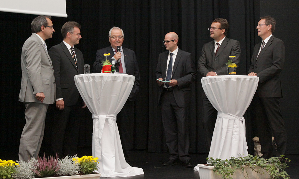 Auftakt war der Festakt am 15. September in der Stadthalle in Buchen. Festredner war Prof. Dr. Klaus Töpfer, ehemaliger Bundesumweltminister und Vorsitzender der Ethikkommission für eine sichere Energieversorgung der Bundesregierung. Die beiden Geschäftsführer Dr. Mathias Ginter und Stefan Kaufmann konnten zahlreiche Gäste aus Politik und Wirtschaft begrüßen.
