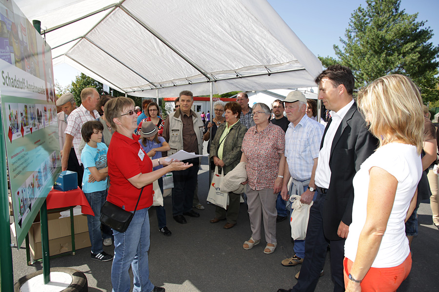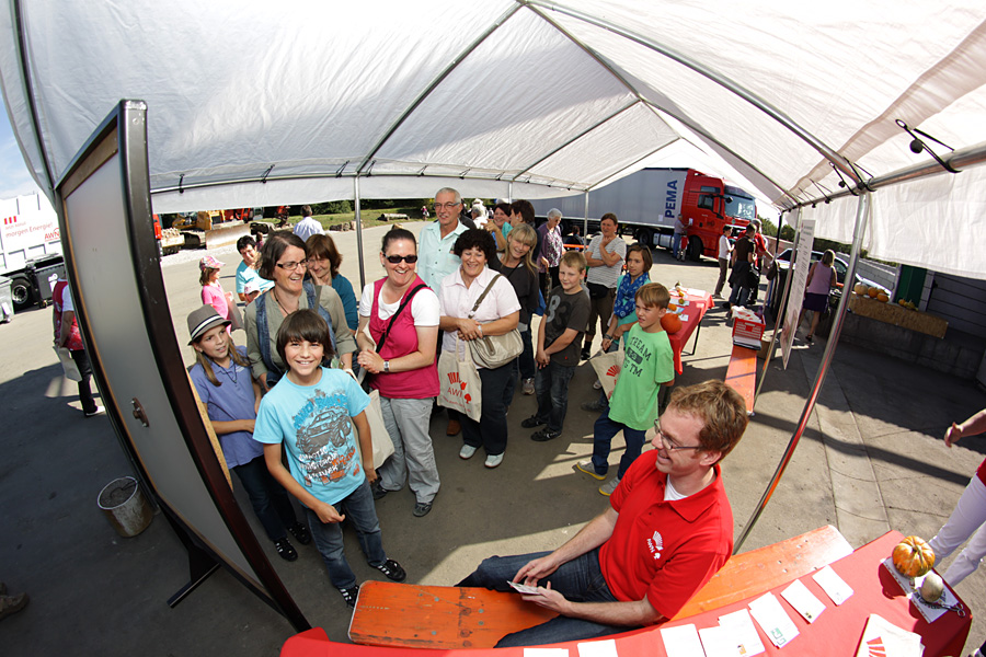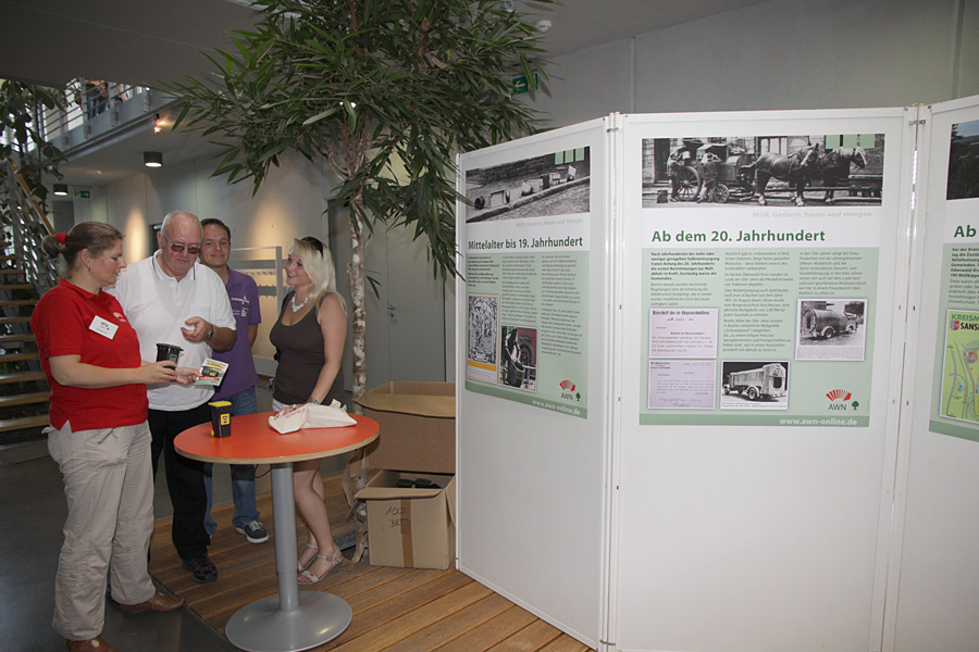 Tags darauf am Sonntag fanden bei herrlichem Spätsommerwetter rund 8000 Besucher den Weg auf das Deponiegelände Sansenhecken. Hier wurden alle Geschäftsfelder der AWN gezeigt; der interessierte Besucher konnte sich über das klassische Thema Abfallwirtschaft genauso informieren wie über erneuerbare Energien, Biogasanlagen, den Energiegarten, die Wundererde "Terra Preta" und vieles mehr. Die Bildergalerie gibt einen Eindruck von diesem Tag der offenen Tür.