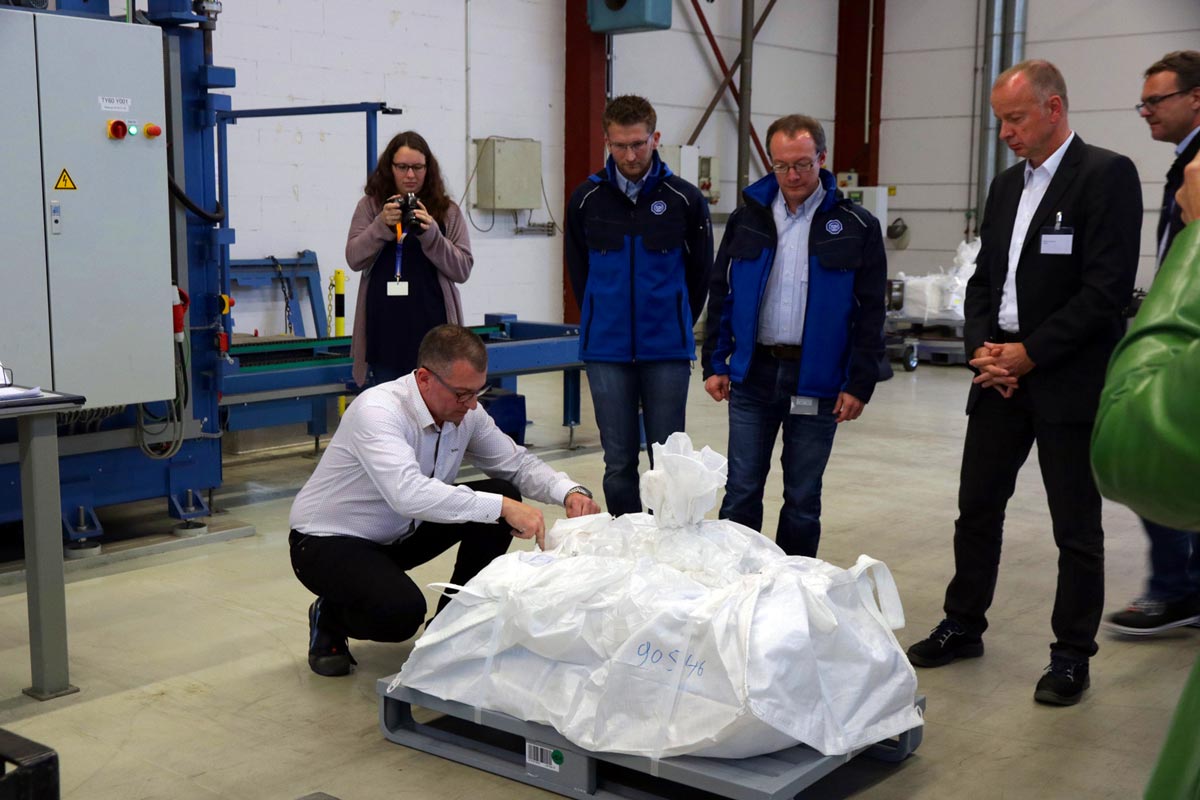 Anschließend wurden den Medienvertretern in der Halle mit Messanlage die Prüfverfahren erläutert. Neben den Technikern der EnBW kontrollieren die von der Aufsichtsbehörde bestellten Sachverständigen (TÜV-Süd) ebenfalls und zu 100% den Messvorgang. Die AWN als Deponiebetreiber kann zusätzlich noch einen eigenen Gutachter bestellen. Insgesamt 20 Big-Bags wurden in der Freimessungsanlage des KWO geprüft, dabei wurden alle Grenzwerte eingehalten. Zusätzlich nahm Dr. Thomas Wilhelm von TÜV Süd mit einem eigenen Messgerät, einem In-situ-Gammaspektrometer, weitere Messung vor. Anschließend wurden die vom TÜV einzeln verplombten Bigbags in einen Container transportiert, der ebenfalls verplombt wurde. Die Prüfergebnisse werden nun an die Aufsichtsbehörde weitergeleitet.