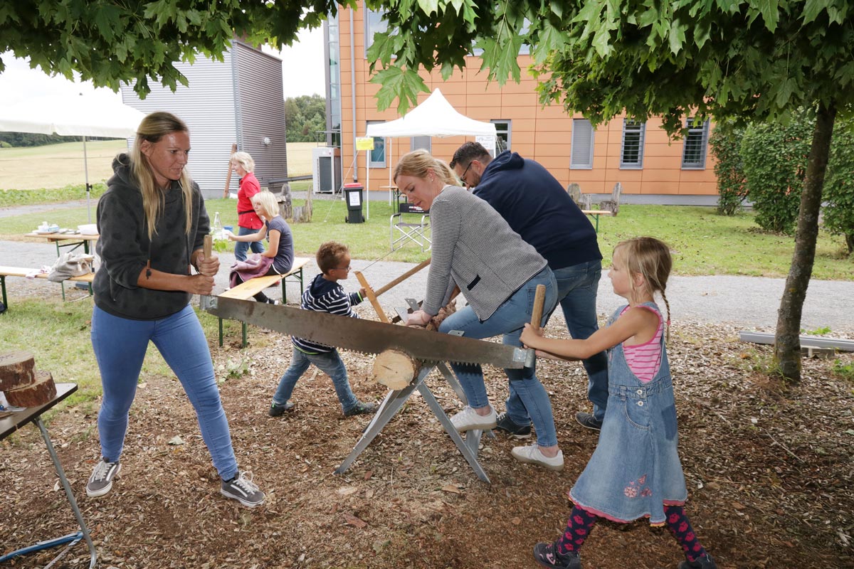 Am Energiegarten vor dem Verwaltungsgebäude führten Lehrerinnen und Lehrer des Landesschulzentrums für Umwelterziehung Adelsheim (LSZU), ein enger Partner der AWN, Führungen durch und sorgten mit „naturnahen“ Spielen für Jung und Alt für Unterhaltung. Holzsägen oder das „laufende A“ sowie verschiedene botanische Schaubeete kamen gut an. Allerdings hätte man sich im Energiegarten über mehr Besuch sehr gefreut. Alles in allem waren die AWN-Verantwortlichen mit diesem Tag sehr zufrieden, rund 500 Besucher hatten den Weg „nach Sansenhecken“ mit dem Fahrrad, zu Fuß oder mit dem Auto gefunden. Für das leibliche Wohl sorgte der Freizeitclub Rinschheim, die Feuerwehr Buchen half bei der Einweisung der Gäste.