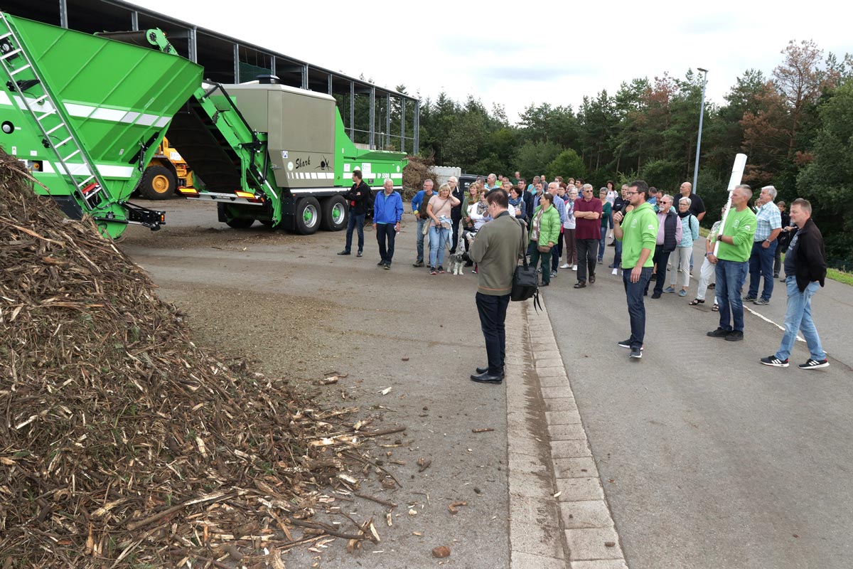 Am Standort hat sich in den letzten Jahren viel getan, dies betonte auch AWN-Geschäftsführer Dr. Mathias Ginter in seiner kurzen Begrüßung vor dem ersten Inforundgang. Im AWN-Biomassezentrum hat man sich zum Ziel gesetzt, regional vorhandene Stoffströme zu verwerten, zu veredeln und wieder, ganz im Sinne der Kreislaufwirtschaft, regional zu nutzen. Das Team um den technischen Leiter Harald Schäfer hatte zahlreiche Infostationen aufgebaut, von Grüngutaufbereitung über Humusherstellung bis hin zur Pflanzenkohleherstellung.