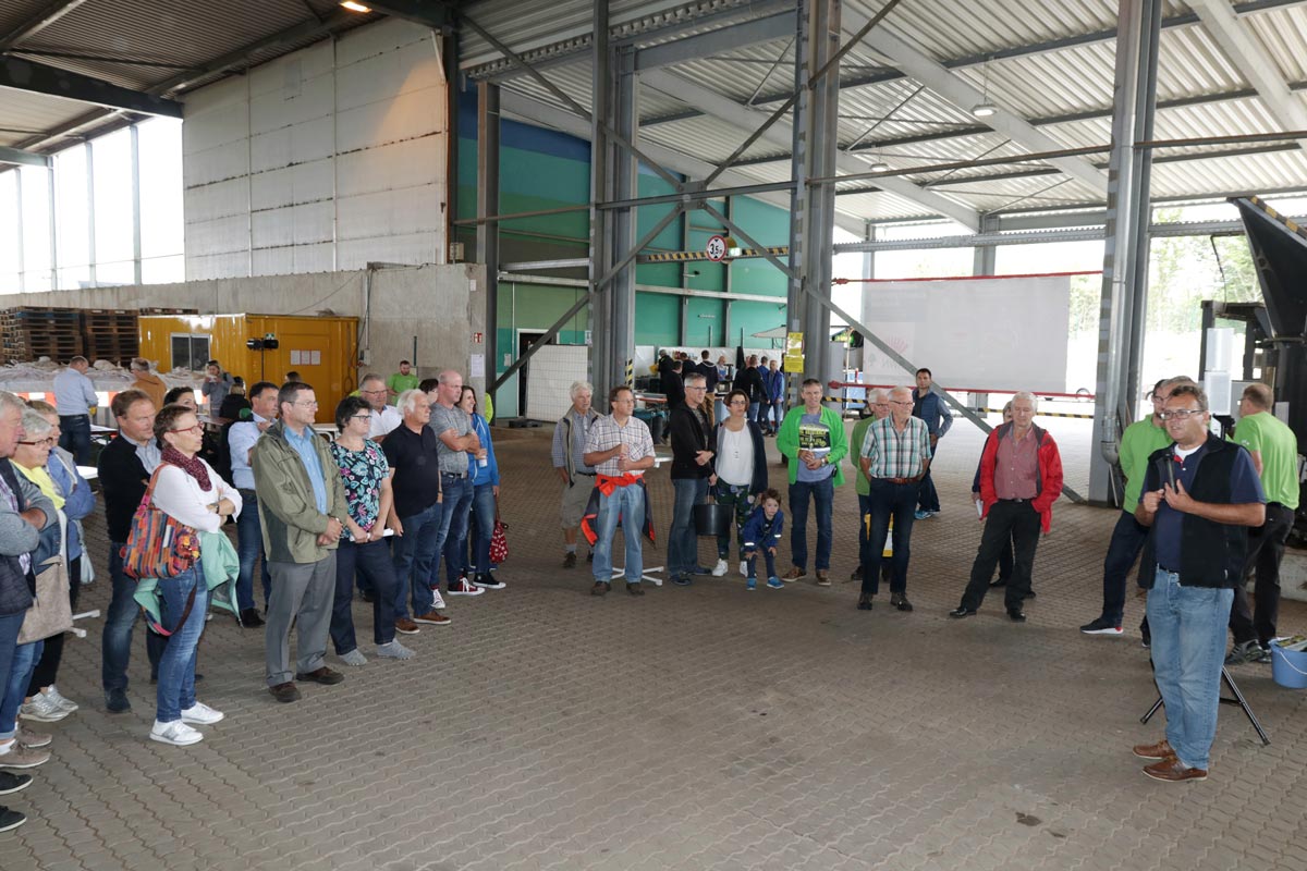 Am Standort hat sich in den letzten Jahren viel getan, dies betonte auch AWN-Geschäftsführer Dr. Mathias Ginter in seiner kurzen Begrüßung vor dem ersten Inforundgang. Im AWN-Biomassezentrum hat man sich zum Ziel gesetzt, regional vorhandene Stoffströme zu verwerten, zu veredeln und wieder, ganz im Sinne der Kreislaufwirtschaft, regional zu nutzen. Das Team um den technischen Leiter Harald Schäfer hatte zahlreiche Infostationen aufgebaut, von Grüngutaufbereitung über Humusherstellung bis hin zur Pflanzenkohleherstellung.
