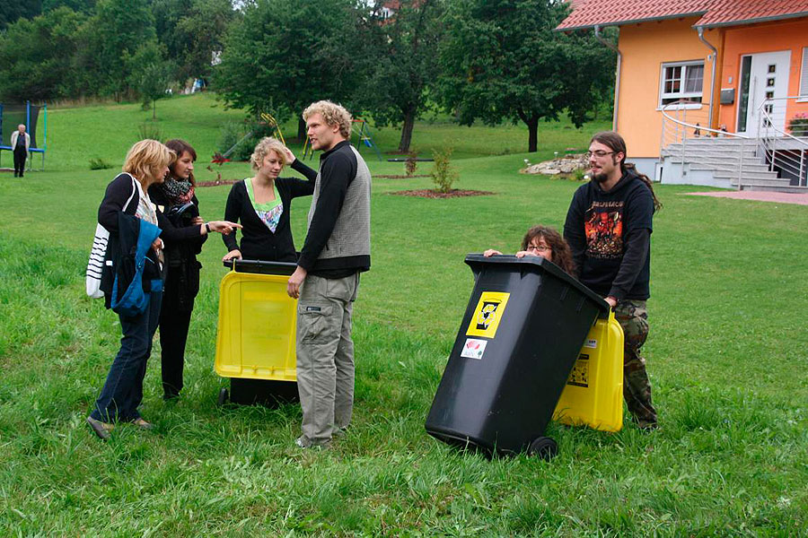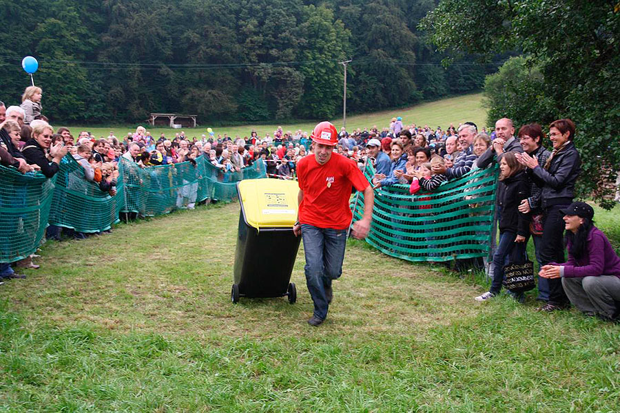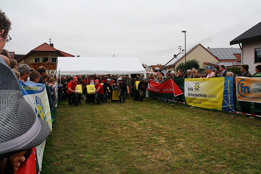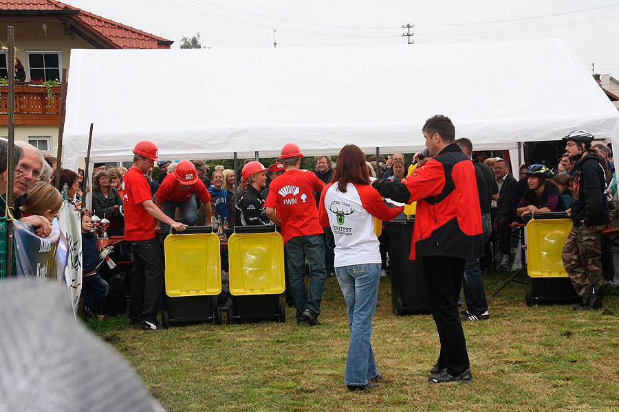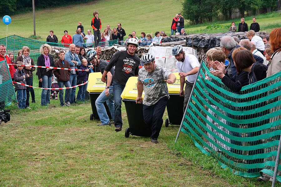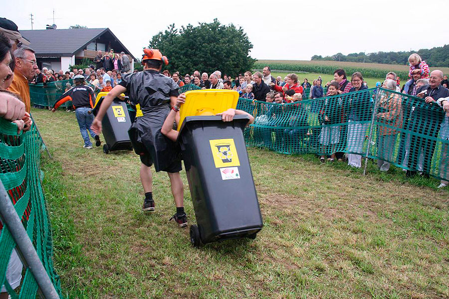 Beim Dorffest Hirschlanden wurde die erste Weltmeisterschaft im Wertstofftonnenrennen ausgetragen.
