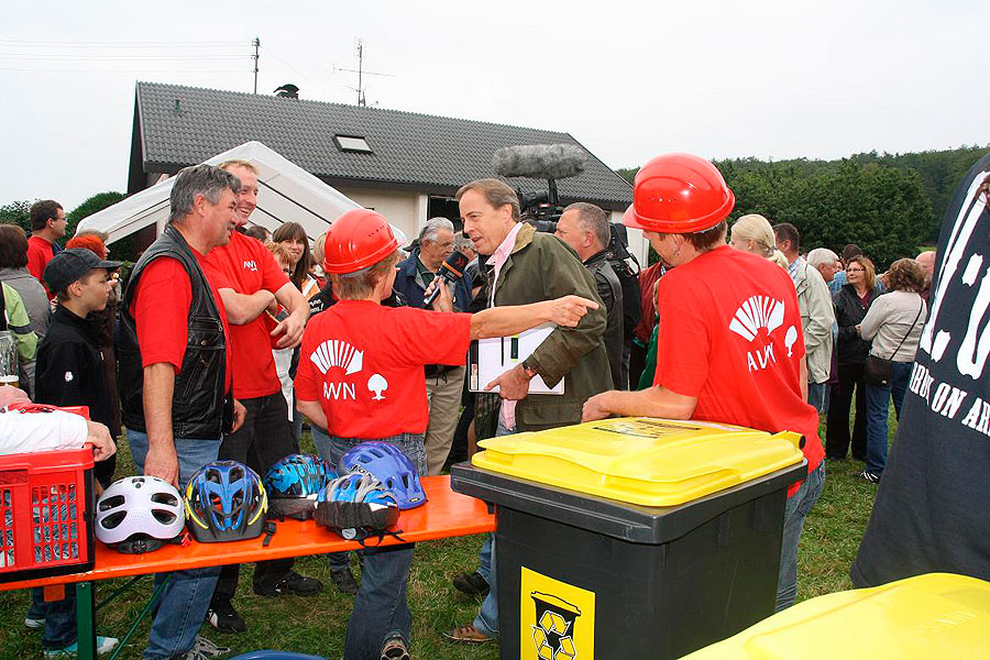 So konnte der Umweltminister Baden-Württembergs live miterleben, wie ein- und mehrjährige Energiepflanzen gepflegt und sogar Weidehütten gebaut wurden. Stefan Kaufmann, gemeinsam mit Dr. Mathias Ginter Geschäftsführer der AWN, stellte in seinen Grußworten das breite innovative Betätigungsfeld der AWN heraus. Neben der „restmüllfreien Abfallwirtschaft“ laufen weitere Projekte in den Bereichen erneuerbare Energien und der sinnvollen Nutzung von Abwärme. In diesem Zusammenhang bedankte sich Kaufmann für die Bereitstellung von Fördergeldern in Höhe von 150.000 Euro für das Projekt „Abwärme Bundeswehrkaserne Walldürn“, das jährlich mehrere hundertaussend Liter Heizöl einsparen würde. Abschließend gab H. Prestl interessante Informationen rund um das Thema nachwachsende Rohstoffe und Waldwirtschaft. mh.