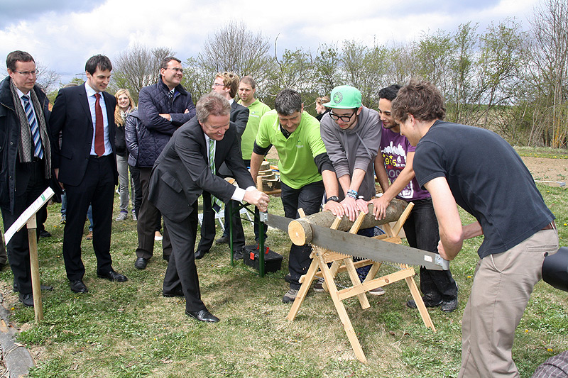 Insbesondere im so genannten „Energiegarten“ neben dem Kompetenzzentrum der AWN war eine Menge los: Schülerinnen und Schüler vom Landesschulzentrum für Umwelterziehung (LSZU) in Adelsheim legten kräftig Hand an, um den Energiegarten zu erweitern. Dieses Projekt „Erneuerbare Energien zum Anfassen“ ist eine Kooperation der AWN und der LSZU und wird von Studiendirektor Reinhard Scheible geleitet.