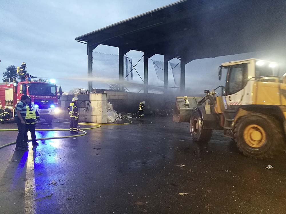 Mehrere Tonnen Müll waren auf der Umschlagfläche in Brand geraten und drohten auf weitere abgemauerte Teile des Geländes überzugreifen. Die Freiwillige Feuerwehr Buchen war mit den Abteilungen Stadt, Bödigheim, Eberstadt sowie Waldhausen vor Ort und konnte den Brand schnell unter Kontrolle bringen. Mit einem Radlader der AWN wurde der Müll auf der Fläche verteilt und konnte so abgelöscht werden. Für die Löscharbeiten wurde zudem der Wasserwerfer des Tanklöschfahrzeugs eingesetzt. Für die Dauer der Löscharbeiten war von der Feuerwehr sicherheitshalber über die WarnApps Nina und KatWarn eine Warnmeldung bezgl. der Rauchentwicklung an die Bevölkerung heraus gegeben worden.