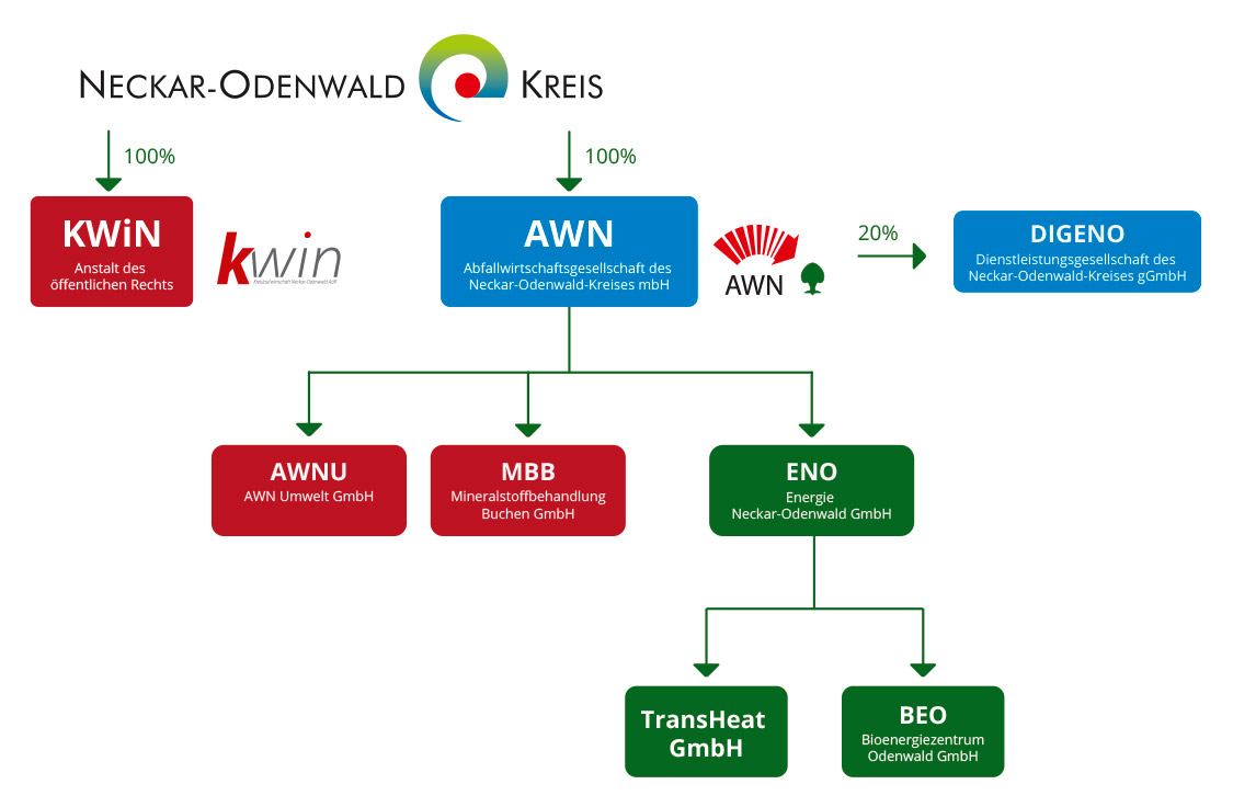 Dabei trägt die AWN der Tatsache Rechnung, dass eine moderne Abfallwirtschaft nicht nur eine umweltgerechte Entsorgung von Abfällen organisiert, sondern auch die Aufgabe hat, aus den gewonnenen Stoffströmen Sekundärrohstoffe und Energie zu gewinnen. Im Januar 2018 wurde die Abfallwirtschaft im Neckar-Odenwald-Kreis den sich ändernden Bedingungen angepasst und neu organisiert. Neben der AWN ist nun auch die „Kreislaufwirtschaft Neckar-Odenwald, Anstalt des öffentlichen Rechtes“ (KWiN), tätig.