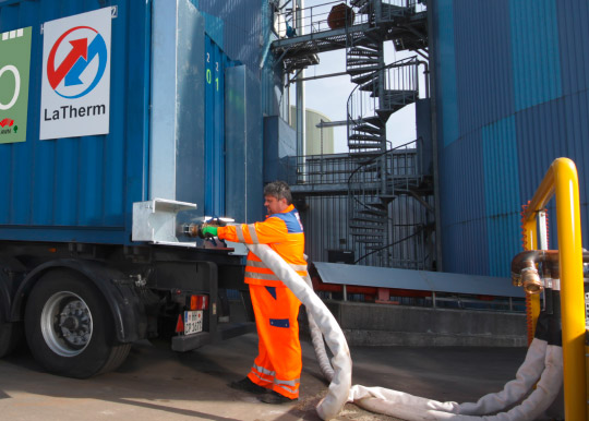 Wo sich aufwändige Wärmenetze nicht rentieren oder der Abnehmer zu weit weg ist, können Latentwärmespeicher, die per LKW auf der Straße transportiert werden, eine Lösung sein.