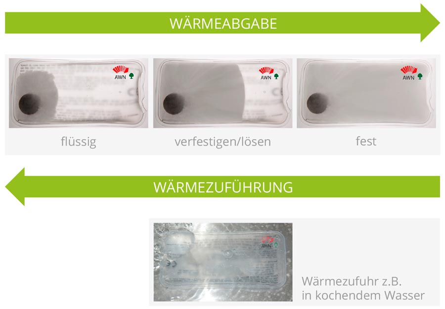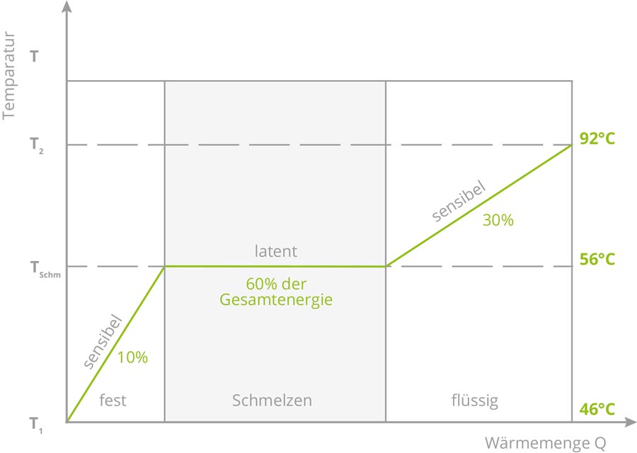 Die Container sind mit Natriumacetat, einer ungefährlichen Salzlösung (Natriumacetat, auch bekannt als „Pökelsalz“), befüllt. Nach dem Prinzip des „Knick-Taschenwärmers“ ist diese Speichermasse in der Lage, die Wärmeenergie einer Wärmequelle zu speichern. Im Idealfall entspricht die gespeicherte Wärmemenge einem Heizäquivalent von rund 250 Litern Heizöl oder 2,5 MWh.